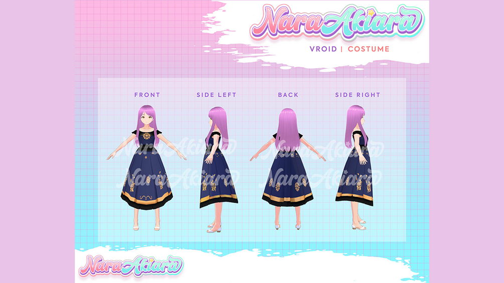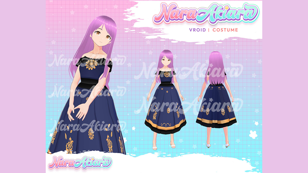 Outfit Vtuber, 3D Vroid, Vroid Clothes, Dress for Vroid, Vroid Clothing, Vroid Commission, Ready Vroid Dress, Vroid Outfit, Outfit Vroid Model, Vroid Dress, Vroid Shirt, Vroid Navy Dress, Elegant Vroid Dress