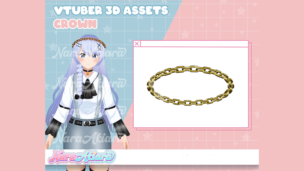 3D Vtuber Assets Chain Crown Vroid Commission, 3D assets ready to use vtuber stream