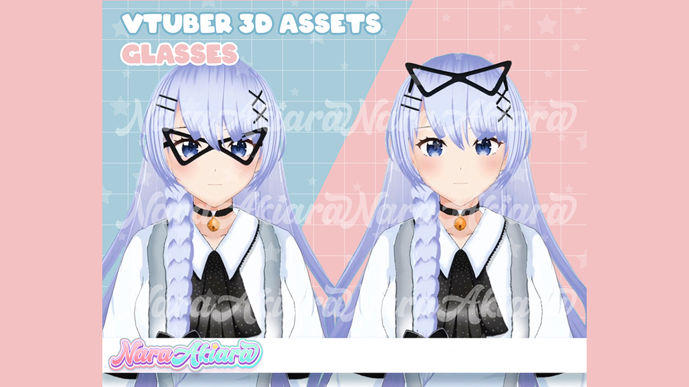 3D Vtuber Assets Glasses V16 vroid commission, 3D assets ready to use vtuber stream