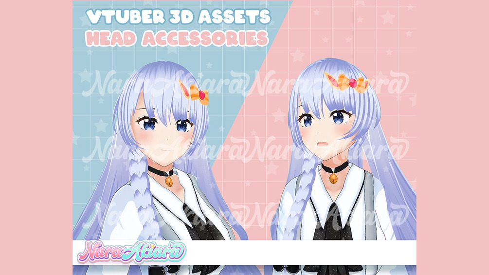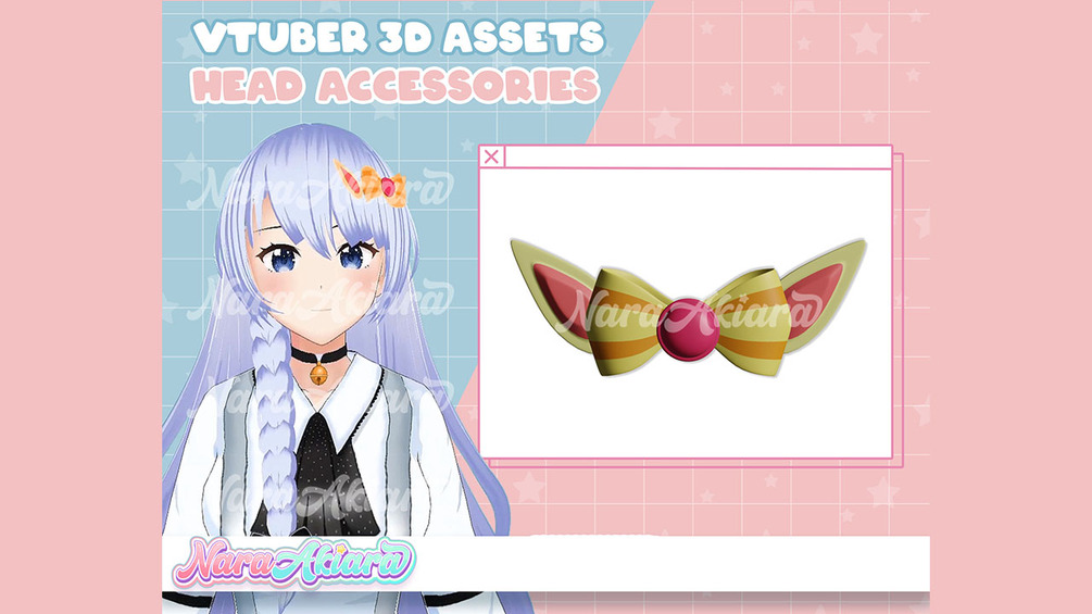 3D Vtuber Assets Head Accessories Aura Ribbon Hairpin Vroid Commission, 3D assets ready to use vtuber stream