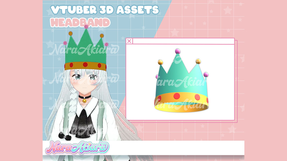 3D Vtuber Assets Headband V48 Vroid Commission, 3D assets ready to use vtuber stream