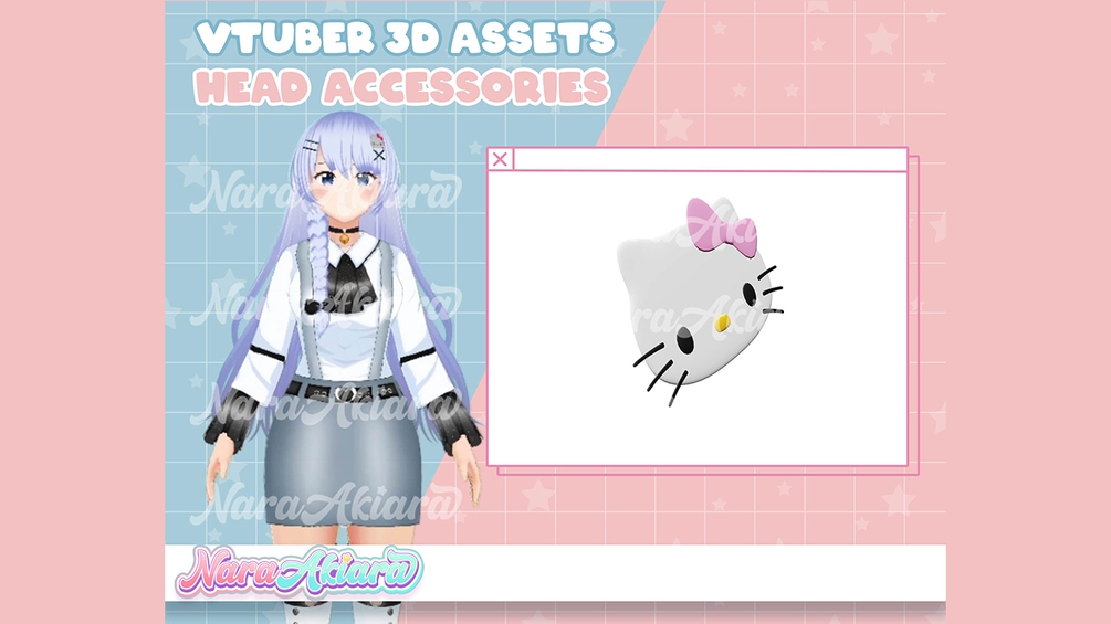 3D Vtuber Assets Hellow kitty Hairpin Vroid Commission, 3D assets ready to use vtuber stream
