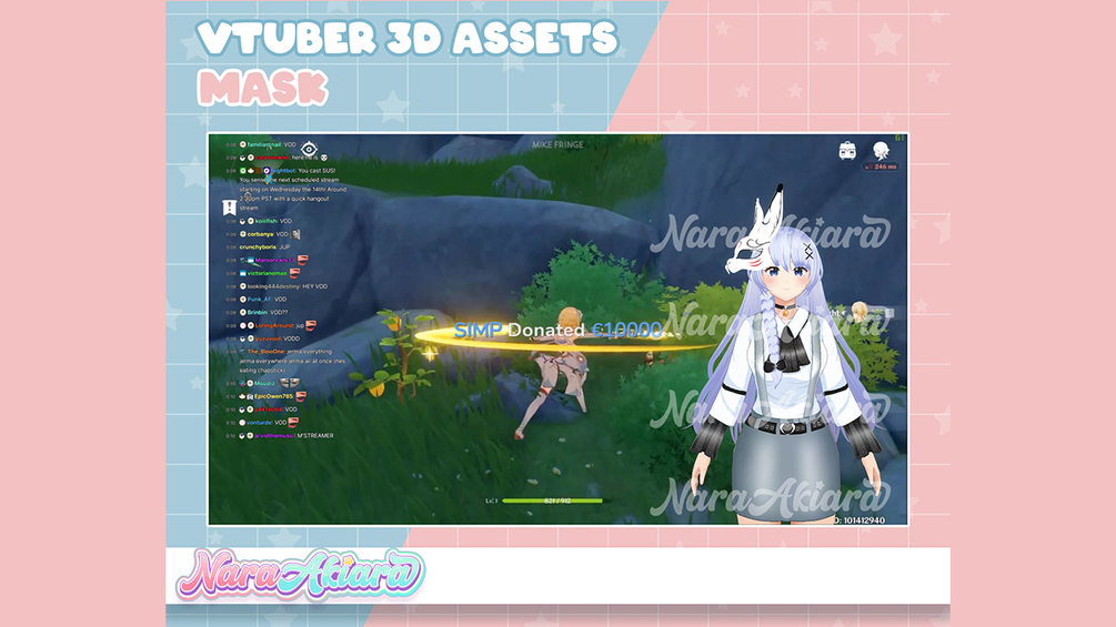 3D Vtuber Assets Mask V5 vroid commission, 3D assets ready to use vtuber stream