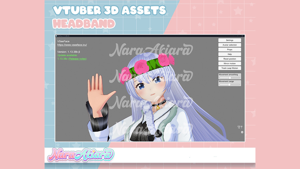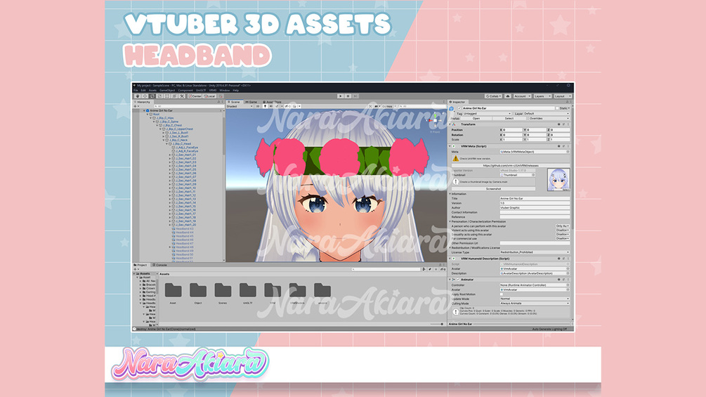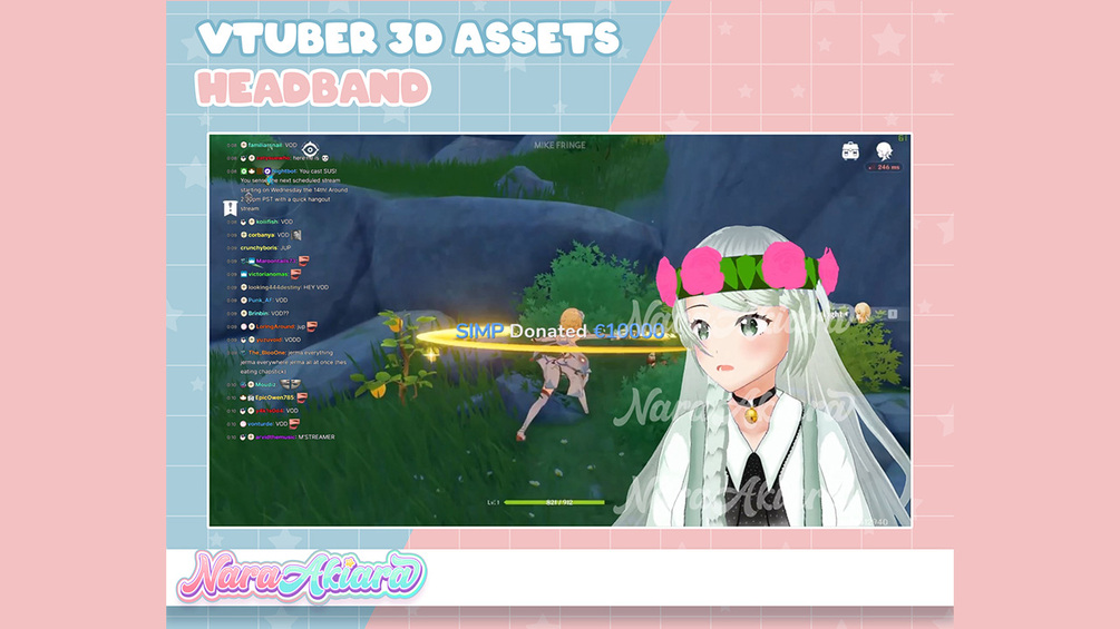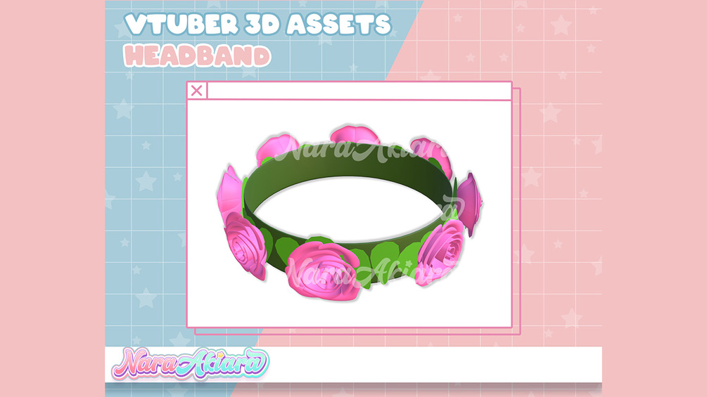 3D Vtuber Assets Pink Rose Headband Vroid Commission, 3D assets ready to use vtuber stream