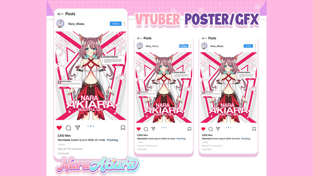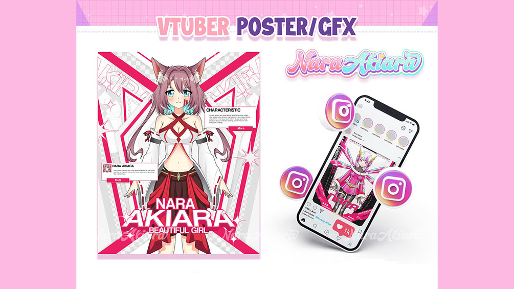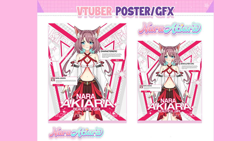 Cheer Up! Be more attractive with your VTuber poster. Now I provide poster templates for all of you. By having an attractive poster you can post your character on your social media and get support from your viewers. With Nara's poster templates, you can easily create amazing and eye catching posters in no time!