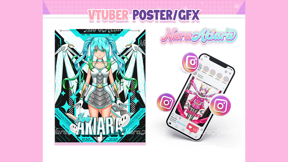 Cheer Up! Be more attractive with your VTuber poster. Now I provide poster templates for all of you. By having an attractive poster you can post your character on your social media and get support from your viewers. With Nara's poster templates, you can easily create amazing and eye catching posters in no time!