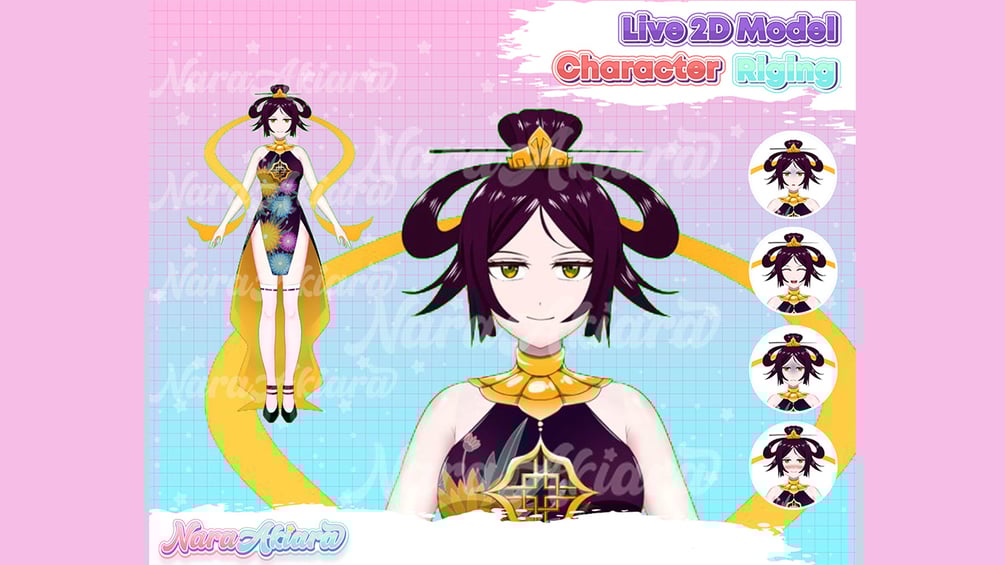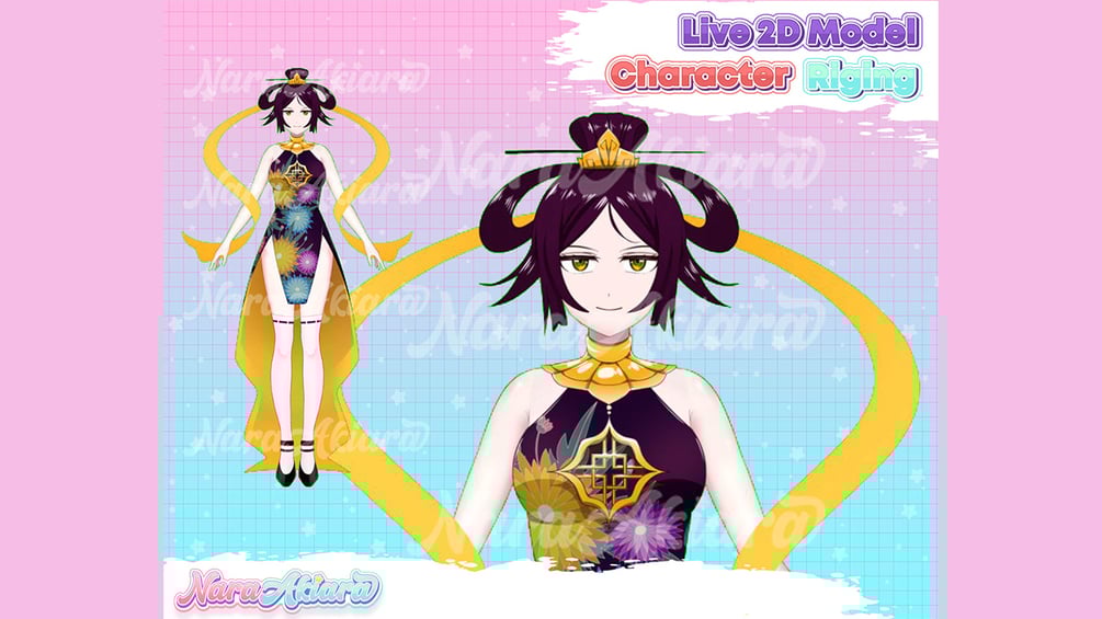 Vtuber Model and Rigging Anime Chinese Girl Purple Hair Premade, Live2d ready to use vtuber stream pack