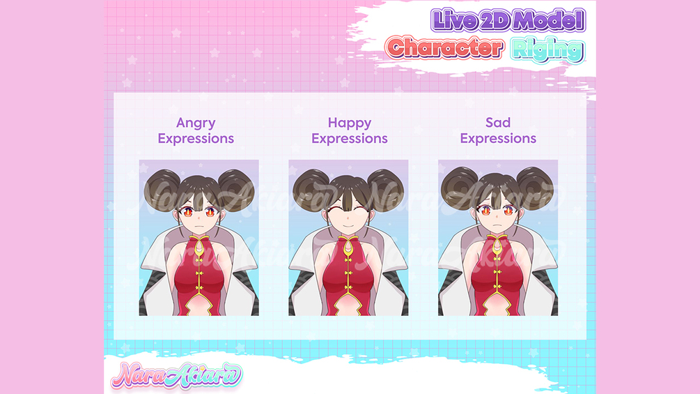 Vtuber Model and Rigging Anime Chinese Girl With Brown Buns Hair Premade, Live2d ready to use vtuber stream pack
