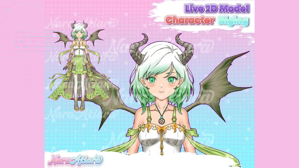Vtuber Model and Rigging Anime Dark Green Devil Girl Premade, Live2d ready to use vtuber stream pack