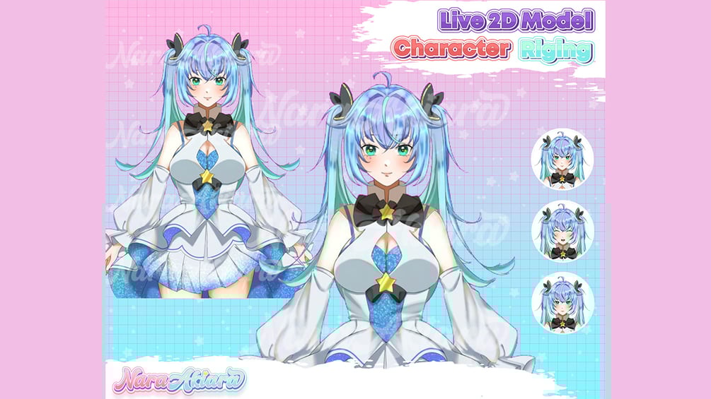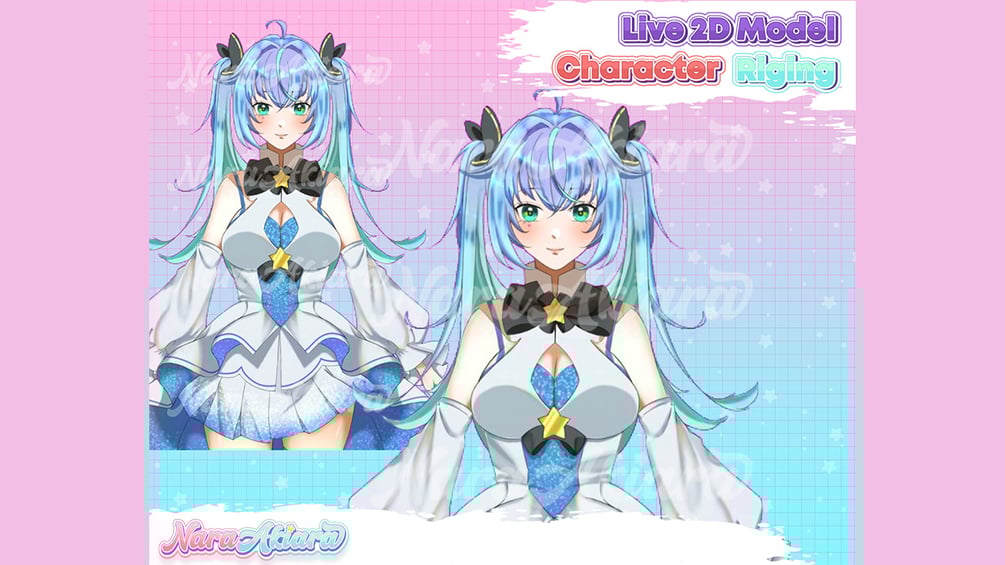 Vtuber Model and Rigging Anime Girl Cute Blue Hair Premade, Live2d ready to use vtuber stream pack