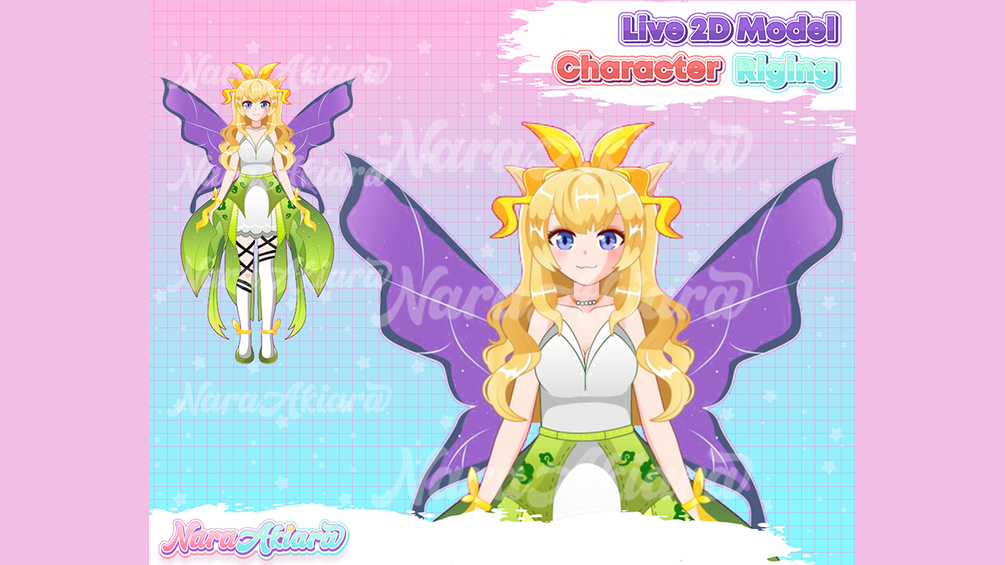 Vtuber Model and Rigging Anime Girl Green Fairy Loli Premade, Live2d ready to use vtuber stream pack