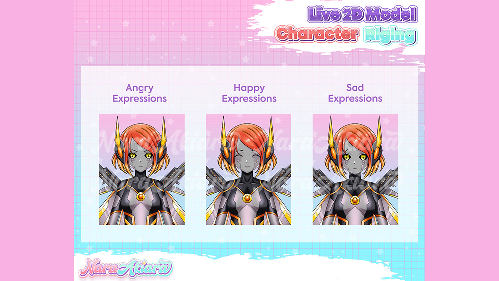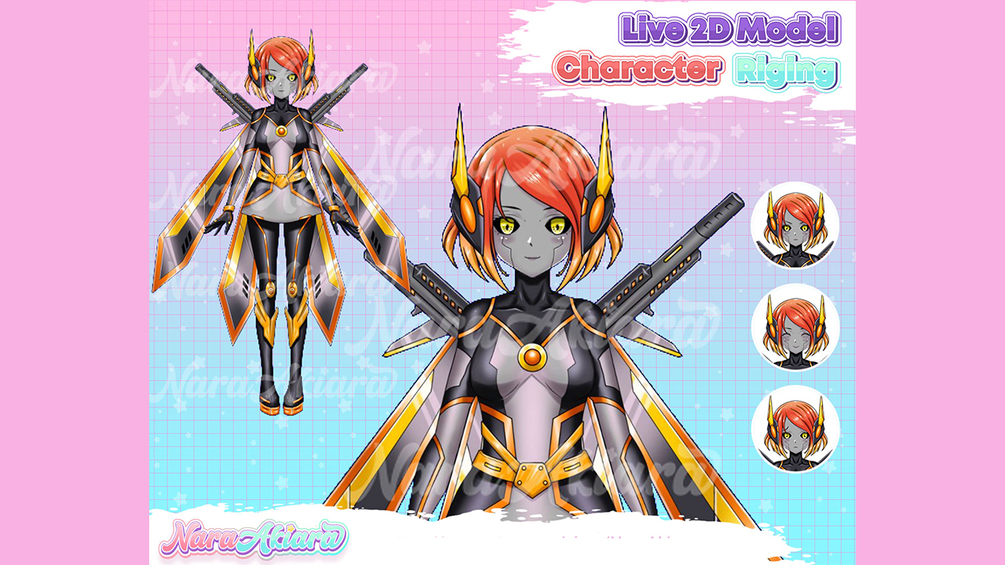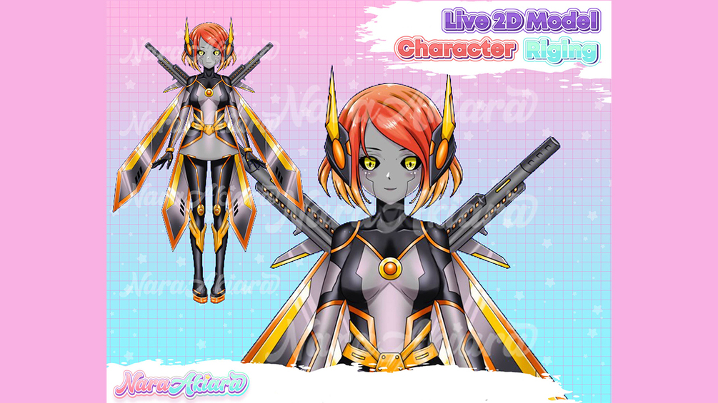 Vtuber Model and Rigging Anime Girl Orange Hair Cyborg Premade, Live2d ready to use vtuber stream pack