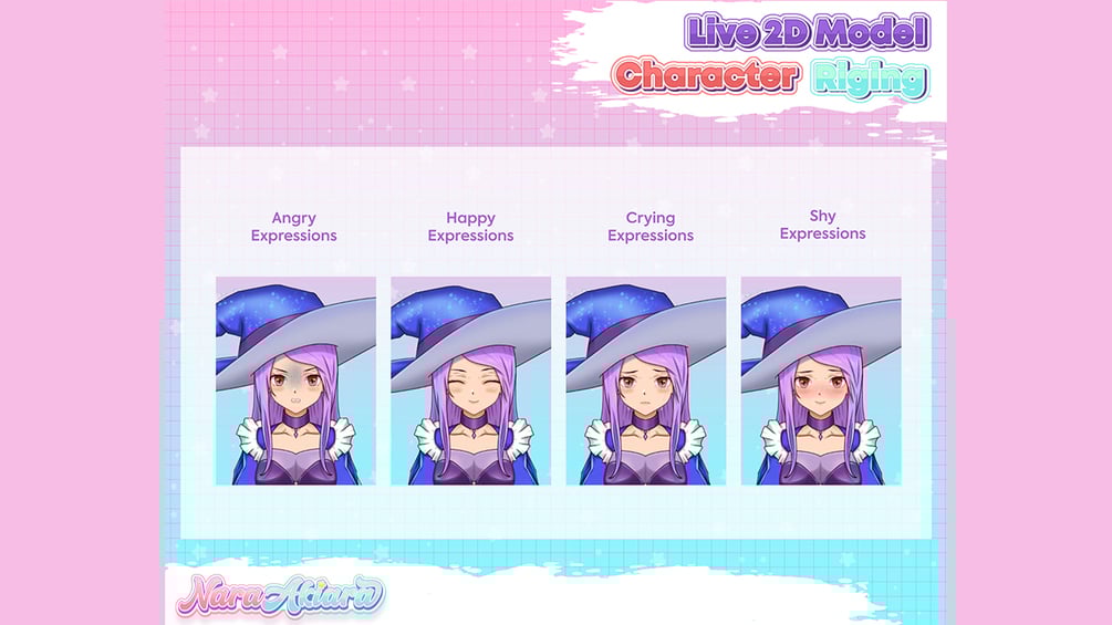 Vtuber Model and Rigging Anime Girl Purple Hair Witch Premade, Live2d ready to use vtuber stream pack