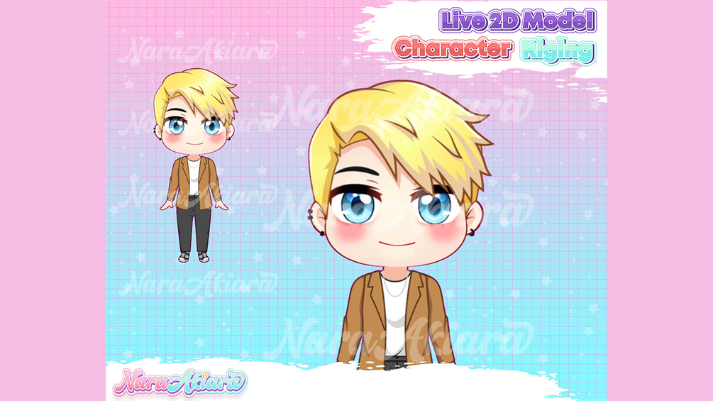 Vtuber Model and Rigging Chibi Male Blonde Hair Premade, Live2d ready to use vtuber stream pack