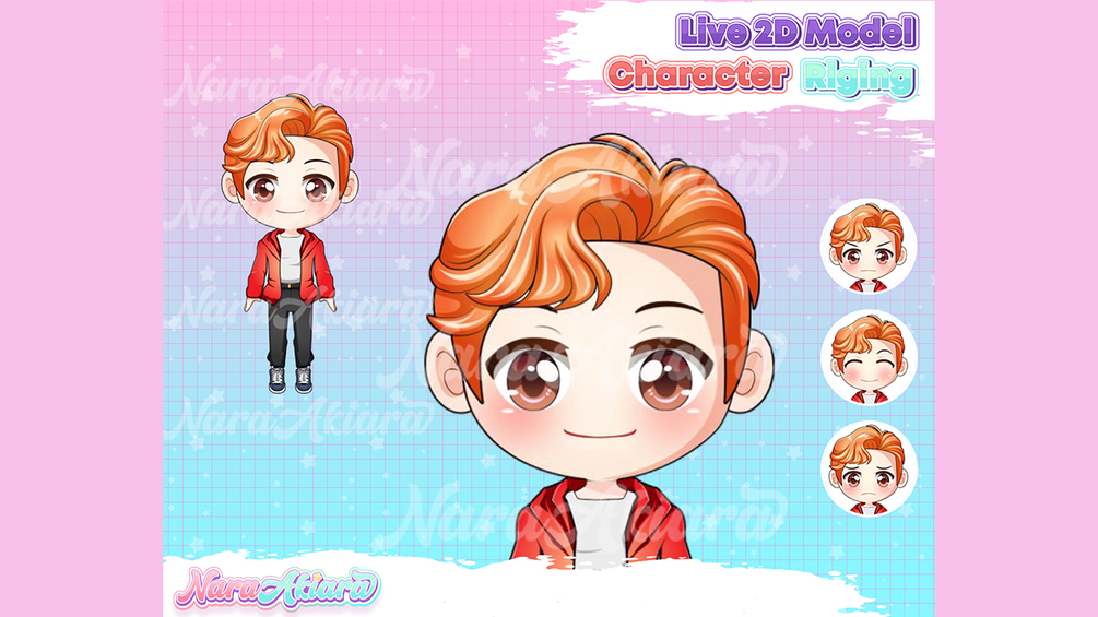 Vtuber Model and Rigging Chibi Orange Hair Male Premade, Live2d ready to use vtuber stream pack